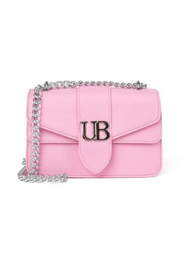 Růžová malá kabelka přes rameno se stříbrným řetízkem