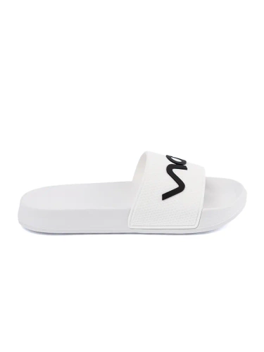 Bílo-tmavě modré sandály na platformě s metalickým zdobením